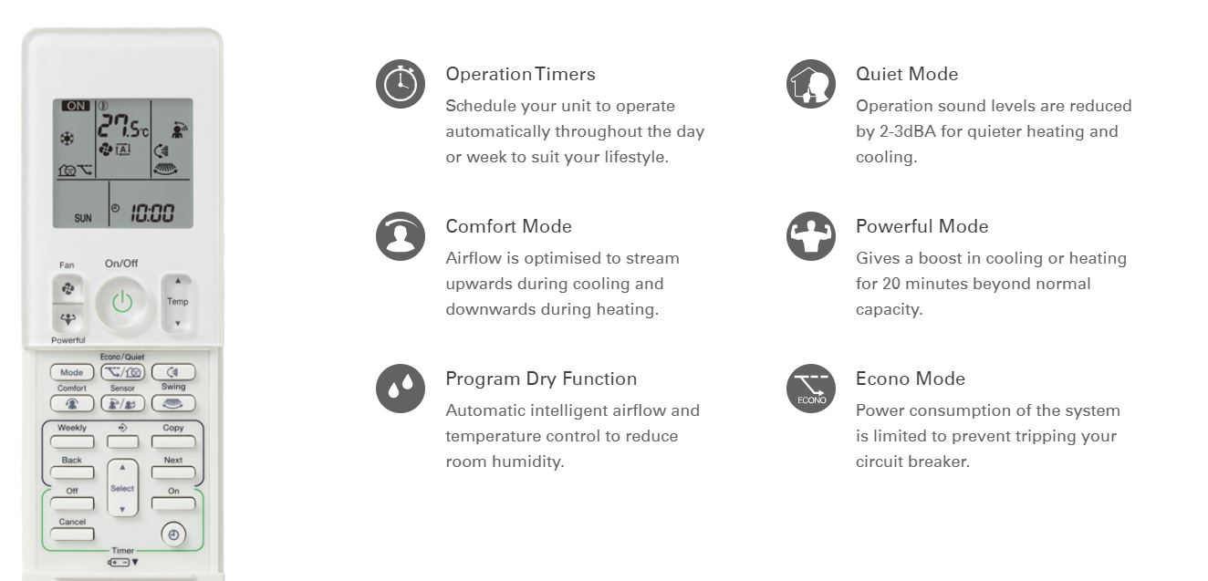 When in quiet mode, the indoor unit noise level drops to a whisper quiet 19dBA (20, 25 & 35 Class Model). You won't even notice that it's on.