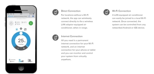 Wi-Fi module for connection to Daikin's Mobile Controller smartphone interface is now conveniently included inside the casing of the indoor unit.